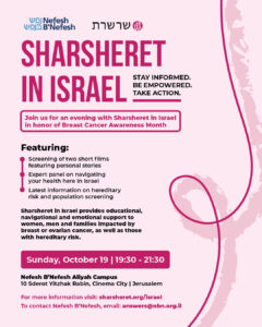 Disclaimer: By joining this program, I understand and acknowledge that Sharsheret is not providing medical advice. Additionally, I release and waive Sharsheret from any liability in the event of any accident or injury I may incur either during the course of this webinar or in performing any of the activities discussed during the same.