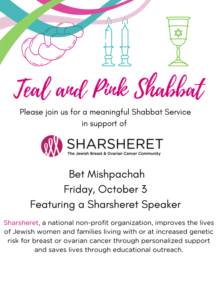 After services (around 8:50–9:00 PM): We’ll hear from a special guest speaker sharing powerful words about their personal story, cancer awareness, and Sharsheret.
