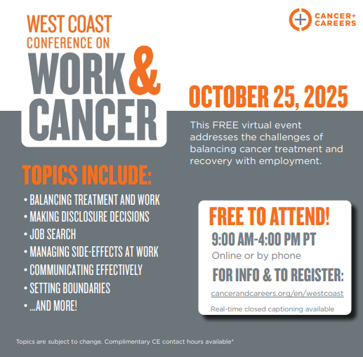 For more details or to register, please visit: www.cancerandcareers.org/en/westcoast